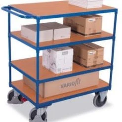 Variofit Tischwagen, Tragl. 500kg, 3 Etage(n), Ladefl. LxB 1000x700mm, Holzböden, RAL5010