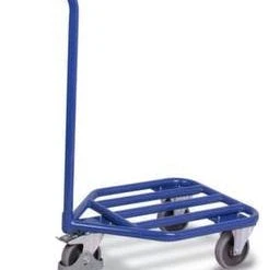 Handpritschenwagen, Traglast 1250 kg, Ladefläche Länge x Breite 2000 x 1000 mm, Plattform aus rutschsicherer/wasserfester Siebdruckplatte, Aufbau 4 Vollwände, Drehschemel-Lenkung mit Kugelkranz, Scherendeichsel mit automatischer gedämpfter Rückstellung in Ruheposition, Gestell mit Pulverbeschichtung in RAL5007 Brillantblau, 4 Räder, mit Luft-Bereifung auf Stahlblech-Felge, Radanordnung rechteckig, Feststeller gemäß EN 1757-3.