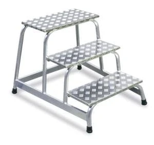 Montagetreppe, Podest Höhe x Breite x Tiefe 600 x 520 x 305 mm, 3 Riffelblechstufe(n) (inkl. Podest), Stufentiefe 240 mm, Höhe x Breite 600 x 730 mm, aus Aluminium, Stufen-Holm-Verbindung verschweißt, rutschhemmende Fußkappen, Gewicht 7 kg.