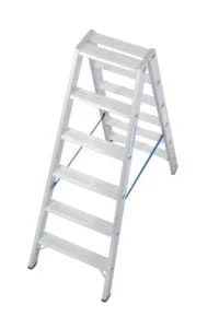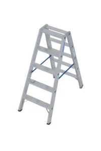 Rollbare Stufenleiter, Aufstieg einseitig, 4 Stufen (inkl. Podest), Standhöhe 0,95 m, Podest Breite x Tiefe 300 x 250 mm, Stufentiefe 80 mm, Holmlänge 1,7 m, Stufen-Holm-Verbindung gebördelt, erhöhte Stabilität durch Eckverstrebungen an der unteren Stufe, sichere Anwendung durch Sicherheitsbügel und Spreizsicherung, mit praktischer Ablageschale und Eimerhaken, rutschhemmende Fußstopfen (SafetyCap) und 4 Federrollen am Holmende, aus Aluminium, aufgestellt Höhe 1600 mm, Gewicht 8,7 kg, Sicherheitshinweis: bei fahrbaren Stehleitern sind gemäß DGUV Information 208-016 bei der Benutzung stets die Zug- und Drucksicherungen zu verwenden!, gemäß DIN EN 131, entspr. DGUV 208-016 (ehem. BGI 694).