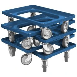 5 Stück Transportroller für Kisten 60 x 40 cm Außenabmessungen (LxBxH): 612 x 417 x 170 mm Ausführung: 4 Lenkrollen Raddurchmesser: 100 mm Radmaterial: Gummi Radgabeln: verzinkt Gewicht: 3,1 kg Tragfähigkeit: 250 kg Rahmenmaterial: ABS Kunststoff Anwendungsbereich: Passend für Kunststoffkasten 600 x 400 mm Farbe: Blau Inkl. 4 Wasserausläufen in den Ecken für eine einfache Reinigung der Transportroller. Auch bei den Logiplast – Transportrollern werden nur Hochleistungskunststoffe für die hohen Qualitätsansprüche eingesetzt. Zusätzlich sorgen die technisch hochwertigen Konstruktionen für eine hohe Traglast. Die Transportroller sind mit leisen Gummirädern ausgestattet, um Sie vor unnötigem Lärm zu schützen.