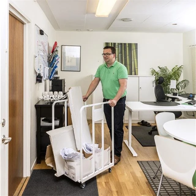 Mit der eleganten weißen Lackierung macht der Rollwagen sich auch gut in Büroräumen und Praxen.
