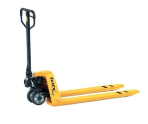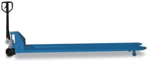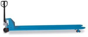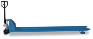 Paletten-Hubwagen, Traglast 2000 kg, Gabel Länge x Breite 2000 x 160 mm, Tragbreite 550 mm, Gabeln mit Markierung zur Paletten-Queraufnahme und Kletterrollen, Lenkräder mit Vollgummi-Bereifung, Breite x Ø 50 x 200 mm, Gabelrollen einfach mit Nylon-Bereifung, Breite x Ø 80 x 94 mm, Hubhöhe 200 mm / abgesenkte Höhe 85 mm, Gabeln aus Stahl mit Pulverbeschichtung in RAL5012 Lichtblau, verwindungssteife Stahlkonstruktion, Deichselgriff für die Funktionen Heben – Fahren – Senken, Deichsel in schwarz, Lenkeinschlag 205 °, mit Regulier-Senkautomatik, Hydraulik mit Überlastungssicherung, Kolben aus Stahl, hartverchromt und geschliffen, Länge 2385 mm, Gewicht 135 kg.