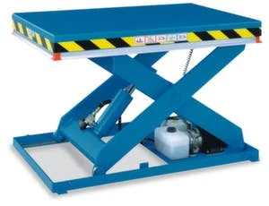 Scherenhubtisch, Traglast 1000 kg, geschlossene Plattform, Plattform Länge x Breite 1350 x 1000 mm, aus Stahl mit Pulverbeschichtung in RAL5019 Capriblau, Nutzhub 900 mm, Bauhöhe 180 mm, Hubzeit 20 Sek, Hubausführung elektrisch, besonders sicher durch Totmannsteuerung, Einfachschere aus Stahl mit Pulverbeschichtung in RAL5019 Capriblau, verwindungssteife Stahlkonstruktion, Energieverbrauch 0,98 kW, Kabel 3 m lang, mit Spannung 400V/50Hz, Schutzart IP65: Eindringen von Staub, Wasserstrahl aus allen Richtungen, Gewicht 200 kg, mit CE-Zeichen.