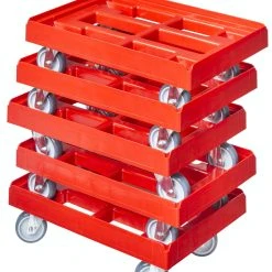 Null 4 Stück Hygiene Transportroller Für Kisten 60 X 40 Cm Mit 4 Lenkrollen Und Bremse In Rot