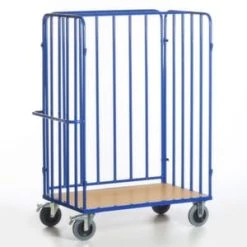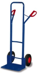 ESD-Fasskarre, Traglast 250 kg, für 1×200 l Flasche, mit verstellbarer Fassicherung, geschweißte Stahlkonstruktion, Gestell mit Pulverbeschichtung in RAL5010 Enzianblau, Höhe x Breite 1600 x 700 mm, Sicherheitsgriffe aus hochfestem Kunststoff, mit Vollgummi-Bereifung auf Stahlblech-Felge, Rad Ø 250 mm, Naben mit Rollenlager.