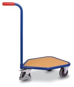 Griffroller, Traglast 250 kg, Ladefläche Länge x Breite 605 x 500 mm, Plattform aus Holz, Gestell mit Pulverbeschichtung in RAL5010 Enzianblau, geschweißte Stahlkonstruktion, 2 Lenk- und 2 Bockrollen, Rad Ø 125 mm, mit TPE-Bereifung auf Kunststoff-Felge, Naben mit Kugellager, Lenkrollen mit Feststellern und Fußschutz.